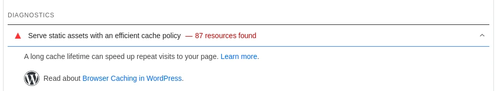 If you are seeing the “Serve static assets with an efficient cache policy” notice in PageSpeed, you need to add the Cache-Control header to your website.